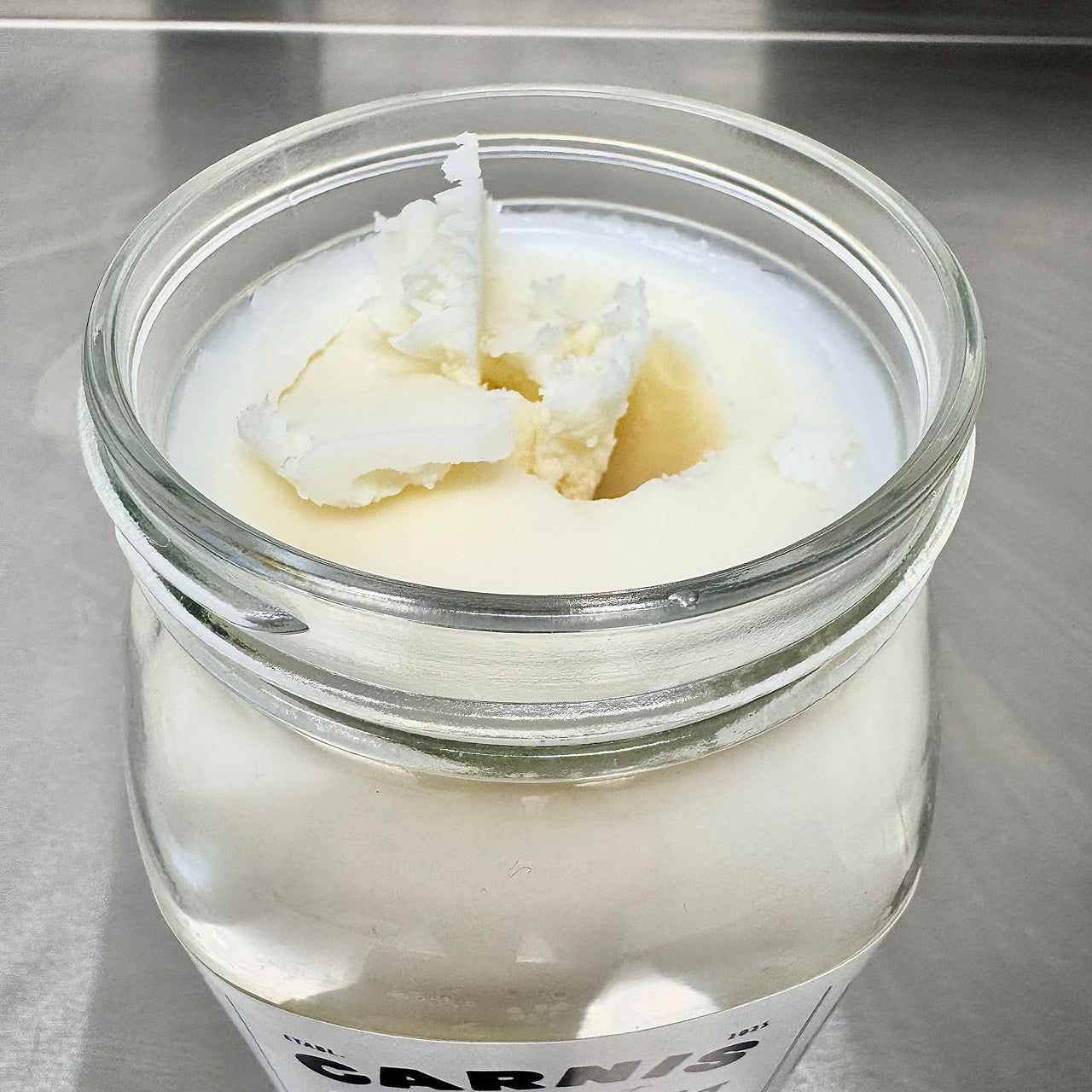 På dag 3 gjentar vi samme prosess med grov rensing, koking og finrensing med osteklede, for så å helle talget i nyvaskede, tørre krukker. Dette får størkne over én natt.